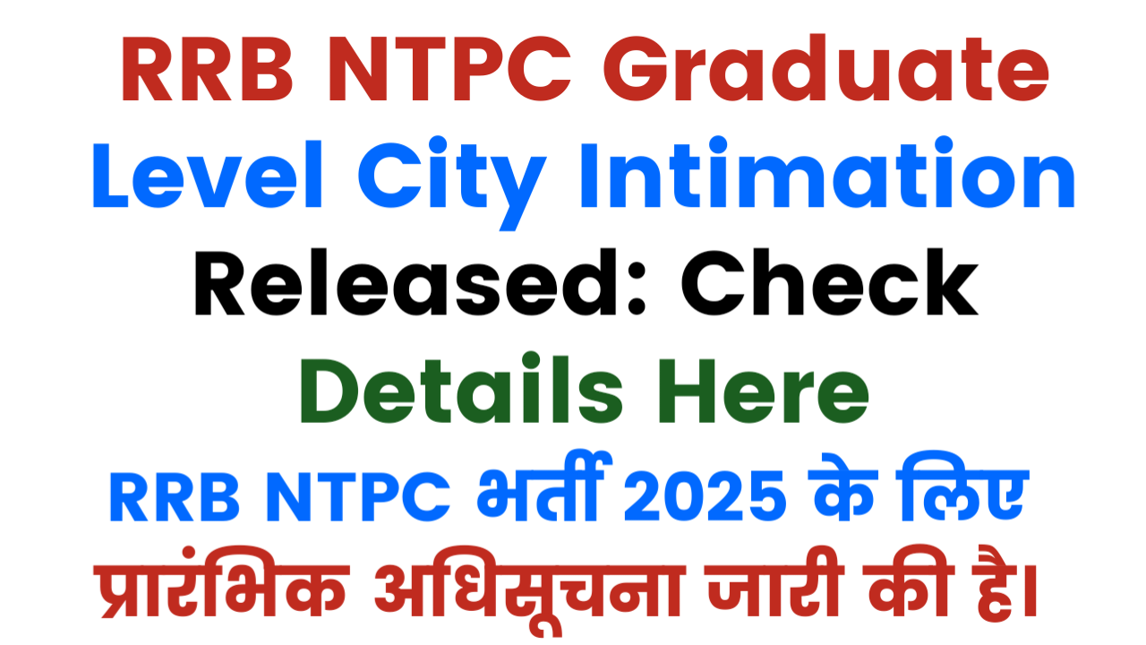 RRB NTPC Graduate Level City Intimation Released: रेलवे भर्ती बोर्ड (RRB), जो भारत सरकार के रेलवे मंत्रालय के तहत कार्य ...