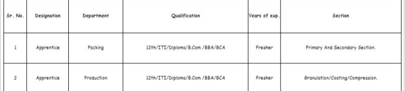 Candidates must be open to work in shift duties and having pharma experience in regulated plant like USFDA, MHRA should apply.उम्मीदवारों को शिफ्ट ड्यूटी के लिए तैयार रहना चाहिए, और जिनके पास USFDA, MHRA जैसे रेगुलेटेड प्लांट में फार्मा का अनुभव है, उन्हें आवेदन करने के लिए प्रोत्साहित किया जाता है।